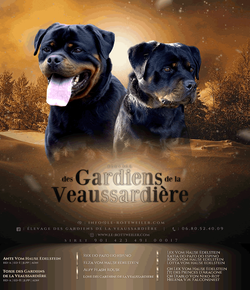 Mère: TOXIE des Gardiens de la Veaussardière / Père: ANTE Vom Hause Edelstein.