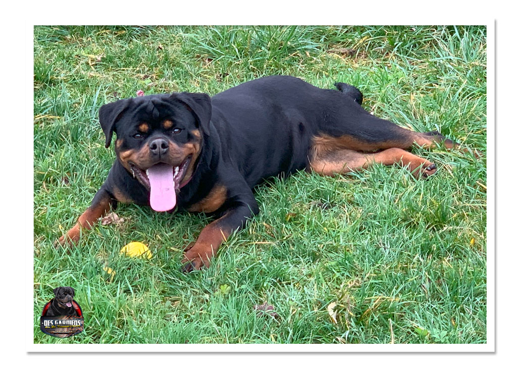 Chez l'élevage Des Gardiens de la Veaussardière, pas 2 ni 3 ou 10 races. Nous ne produisons qu'une seule race: le Rottweiler. C'est une race que nous connaissons depuis plus de 34 ans et nous nous devons de rester fidèles à ce chien très spécifique et attachant. Chez nous il n'y aura jamais autre chose que du Rototo... Ceci est un gage de garantie et de qualité pour nos clients.