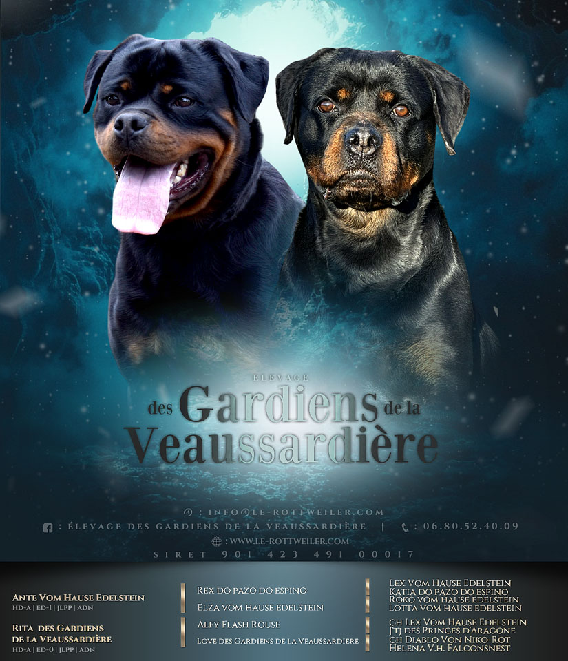 Mère: TOXIE des Gardiens de la Veaussardière / Père: ANTE Vom Hause Edelstein.